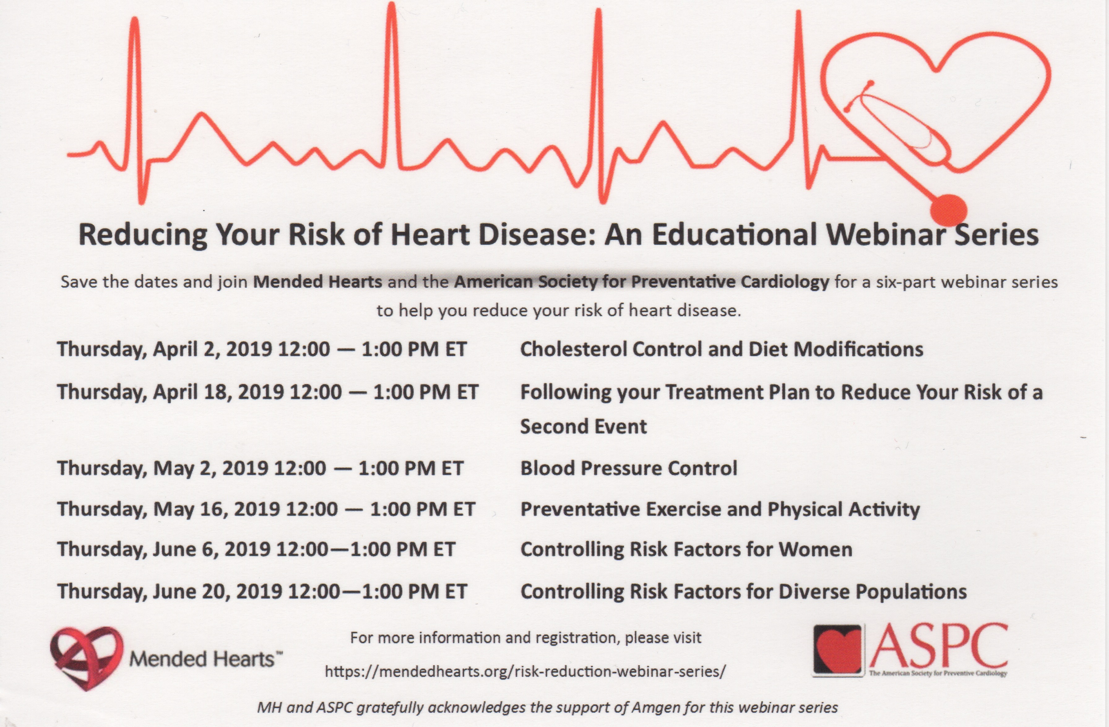 See the upcoming online seminars for Reducing Your Risk of Heart Disease. Register on this page.